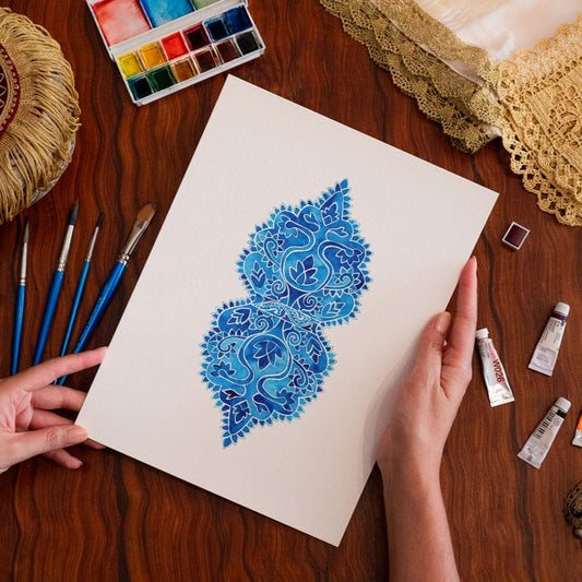 Blue Folk Feathers | Art Print