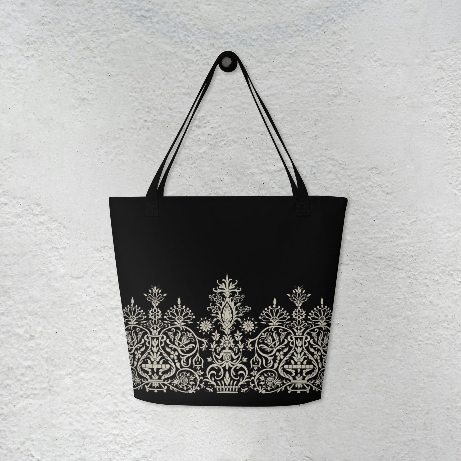 The Black Cretan Mermaid Large Tote, featuring the infamous two-tailed Cretan mermaid motif, is designed for everyday use. Its generous size makes it ideal for work, shopping, or travel, while the internal pocket keeps essentials easy to find. A timeless black palette lets the mermaid motif stand out, making this tote both functional and uniquely striking.